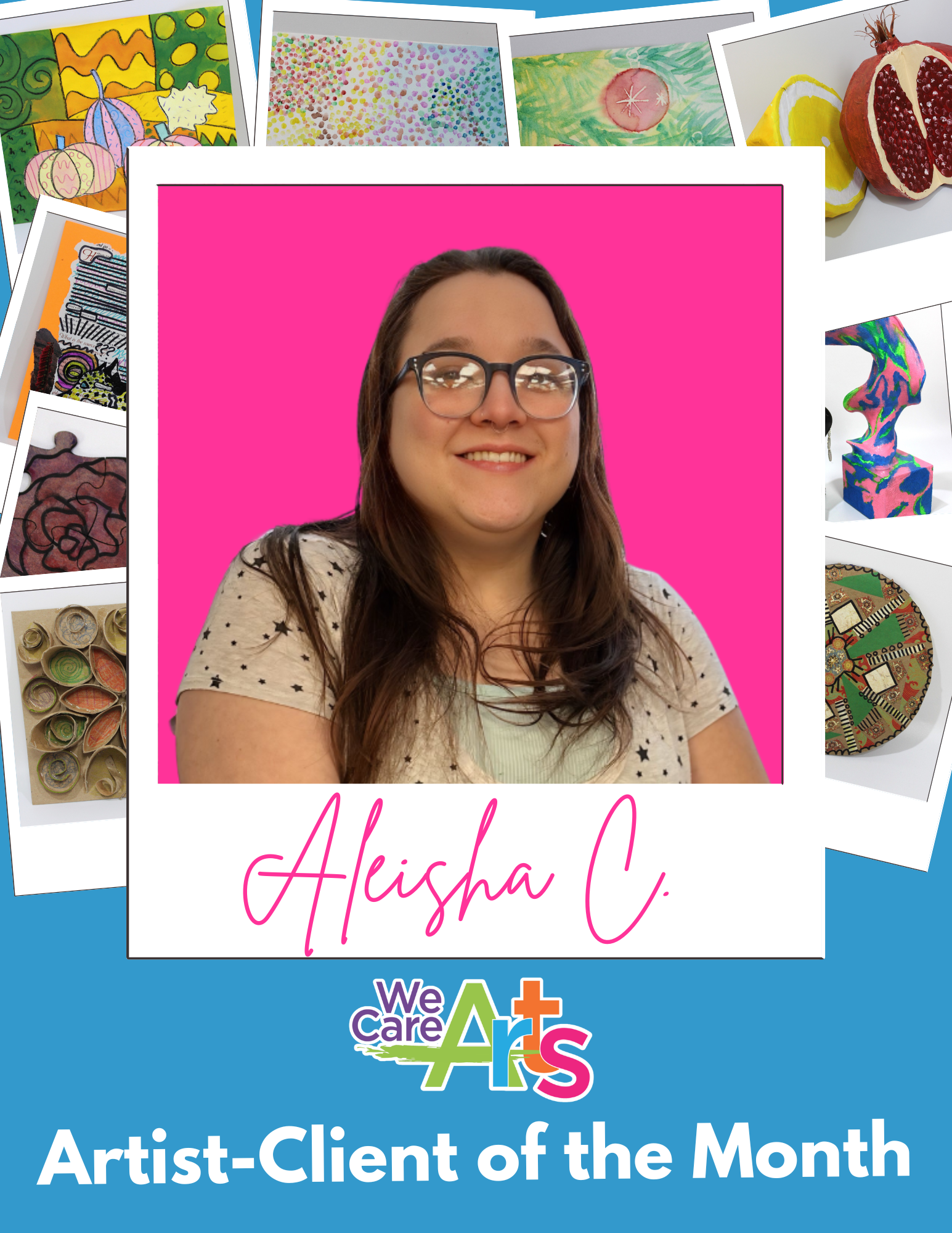 This April, we are thrilled to shine a spotlight on Aleisha C., our Artist-Client of the Month at We Care Arts. Aleisha's journey speaks to the power of creativity, resilience, and embracing one's uniqueness.