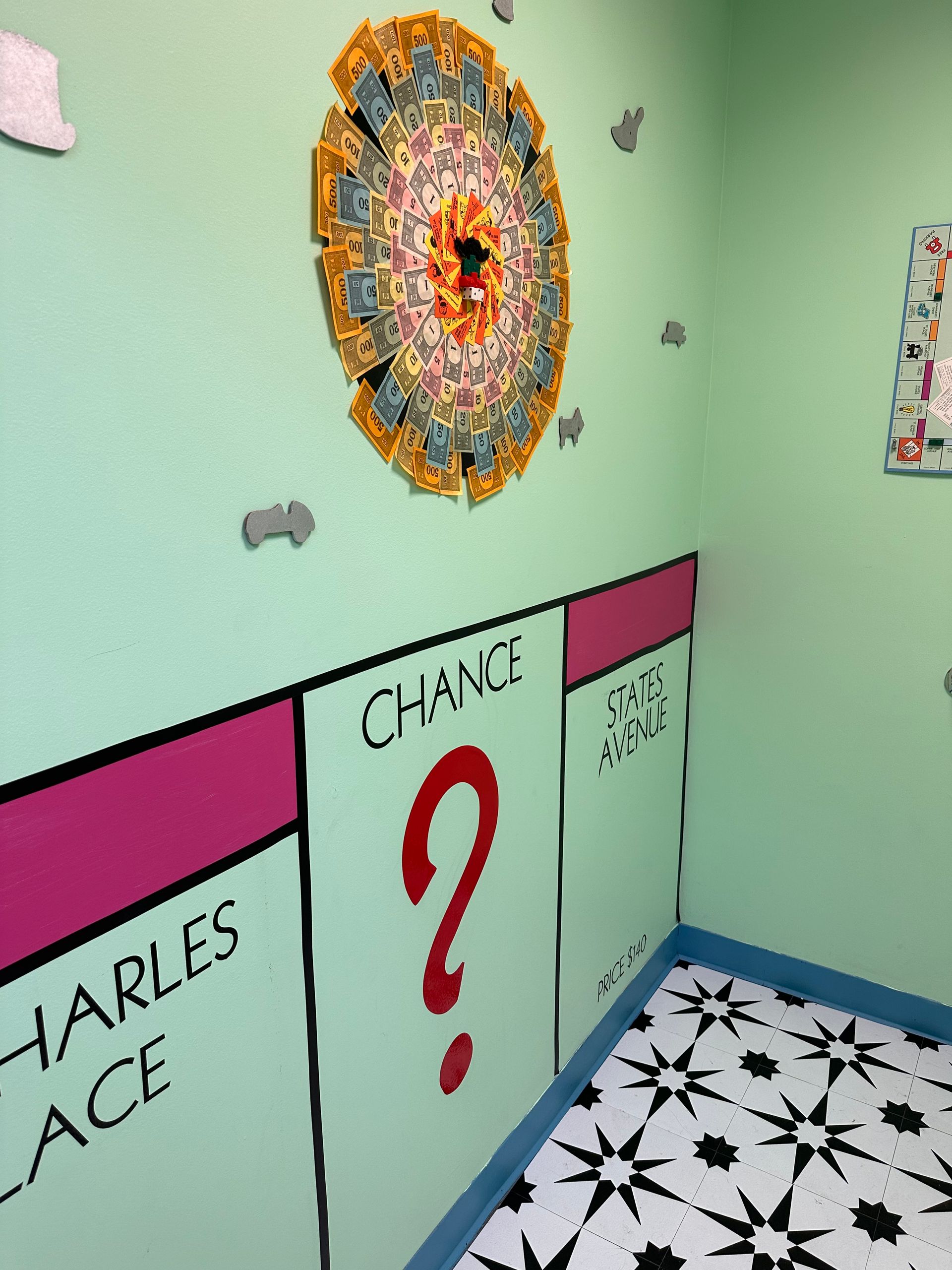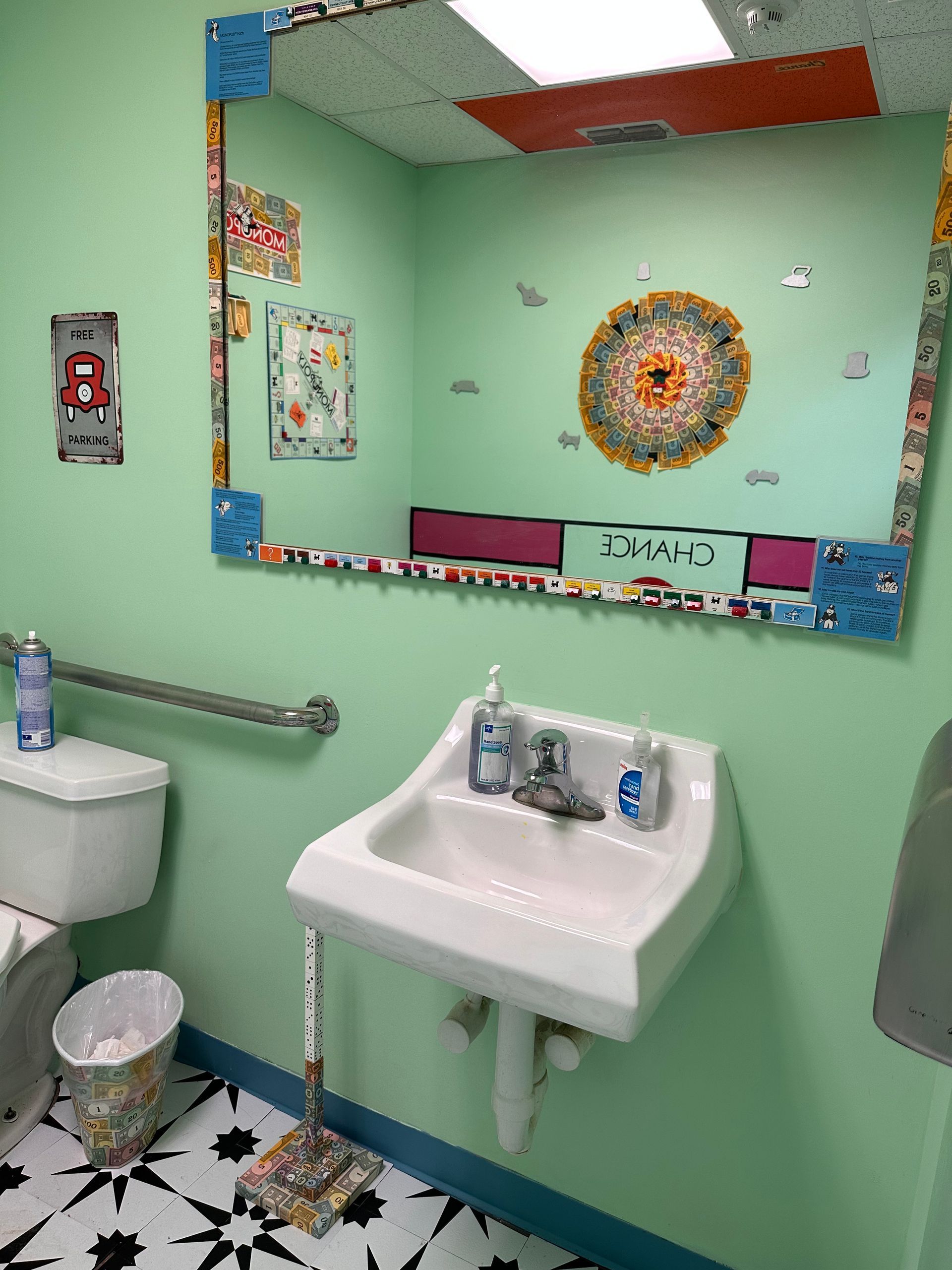 At our workplace, we believe that fostering creativity and camaraderie among staff is essential for maintaining a vibrant and dynamic environment. To that end, thanks to a generous donor who covered the cost of supplies and prizes, we recently hosted an exhilarating competition called "Bathroom Wars," where teams were tasked with designing and decorating our five bathrooms. The challenge was simple yet exciting: come up with a unique theme, get it approved by leadership, and then bring the vision to life. The themes chosen were Medieval Castle, Pantone, Monopoly, Zen Garden, and Art Deco.