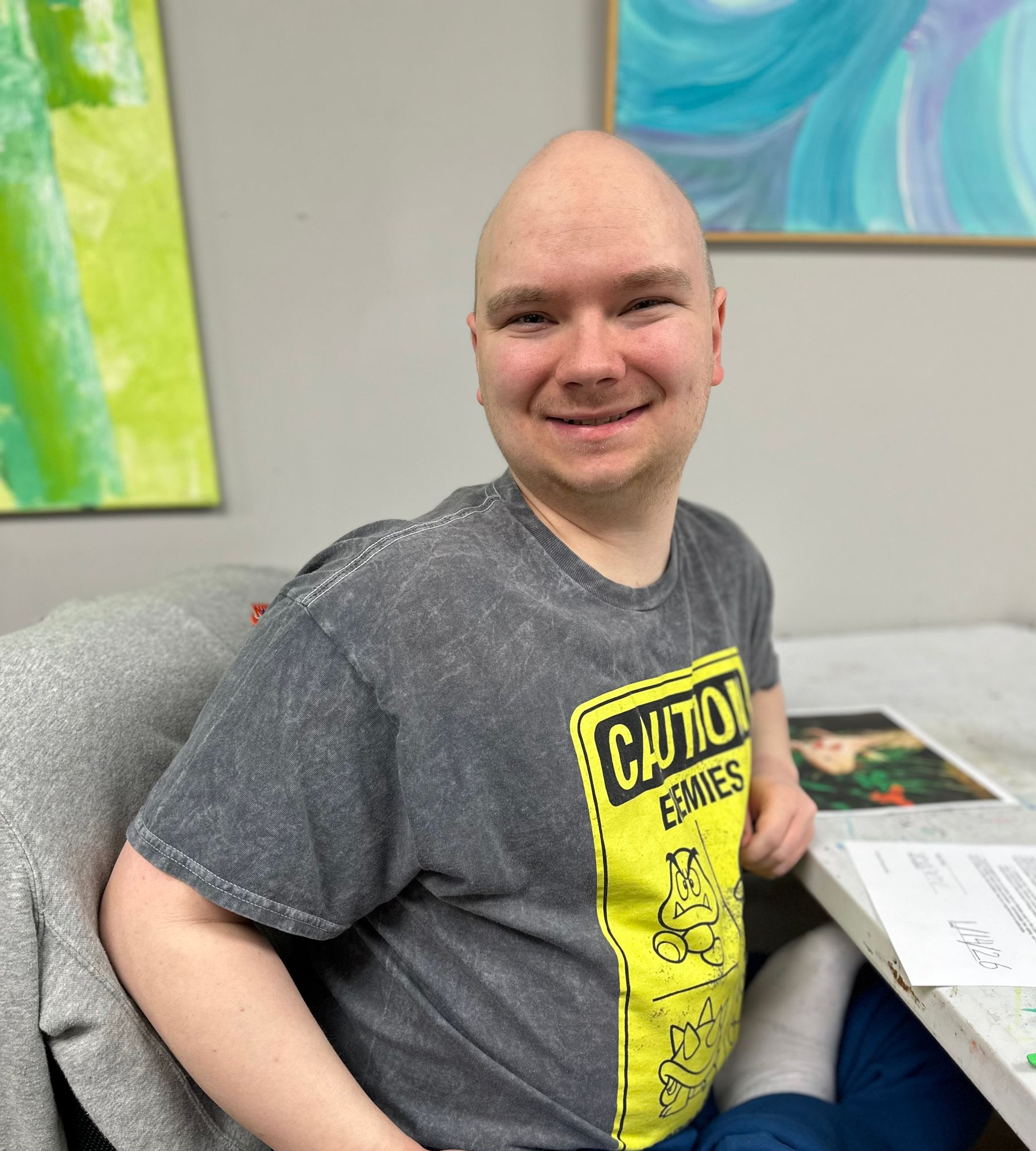 One of the most rewarding aspects of our art classes is witnessing how artist-clients thrive when given the chance to express themselves. Shawn is a shining example of how art can transform lives. A 2023 graduate of Oakwood High School, Shawn has worked at Firehouse Subs for five years. Outside of his professional commitments, he enjoys playing basketball and attending Sinclair Fun Night, demonstrating his diverse range of interests.