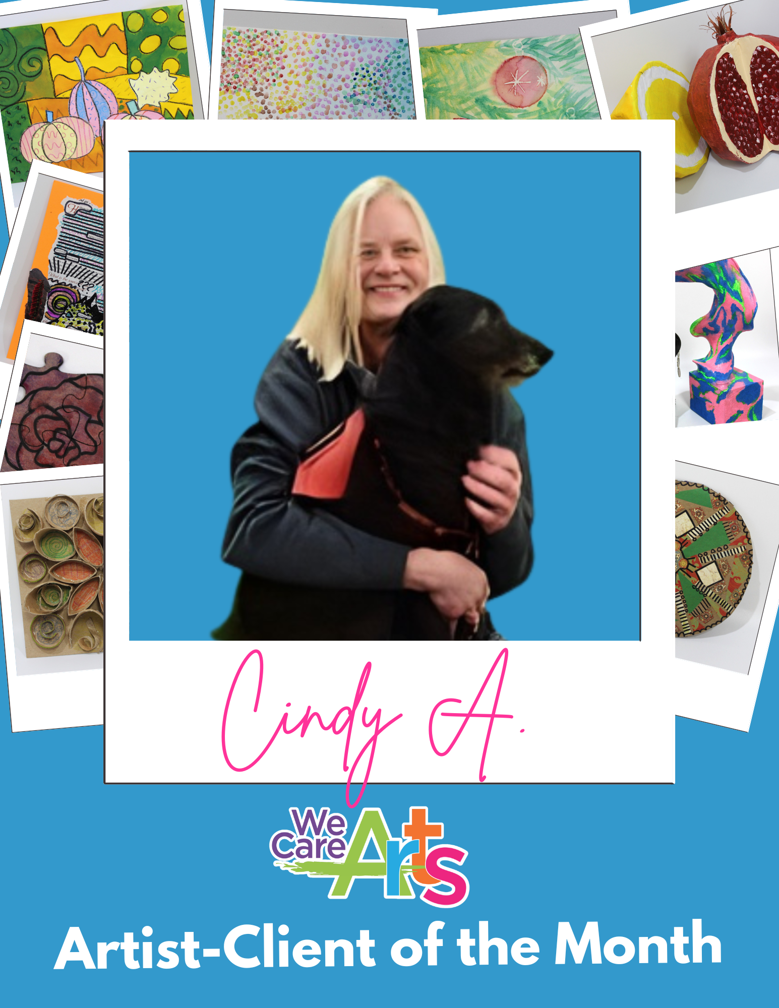 This February, we're thrilled to spotlight Cindy A. as our Artist-Client of the Month at We Care Arts. Cindy, a talented and dedicated artist from Xenia, has been a cherished member of our community for over a decade. Her journey with us is a testament to her artistic growth and commitment, making her an inspiration to all who know her.