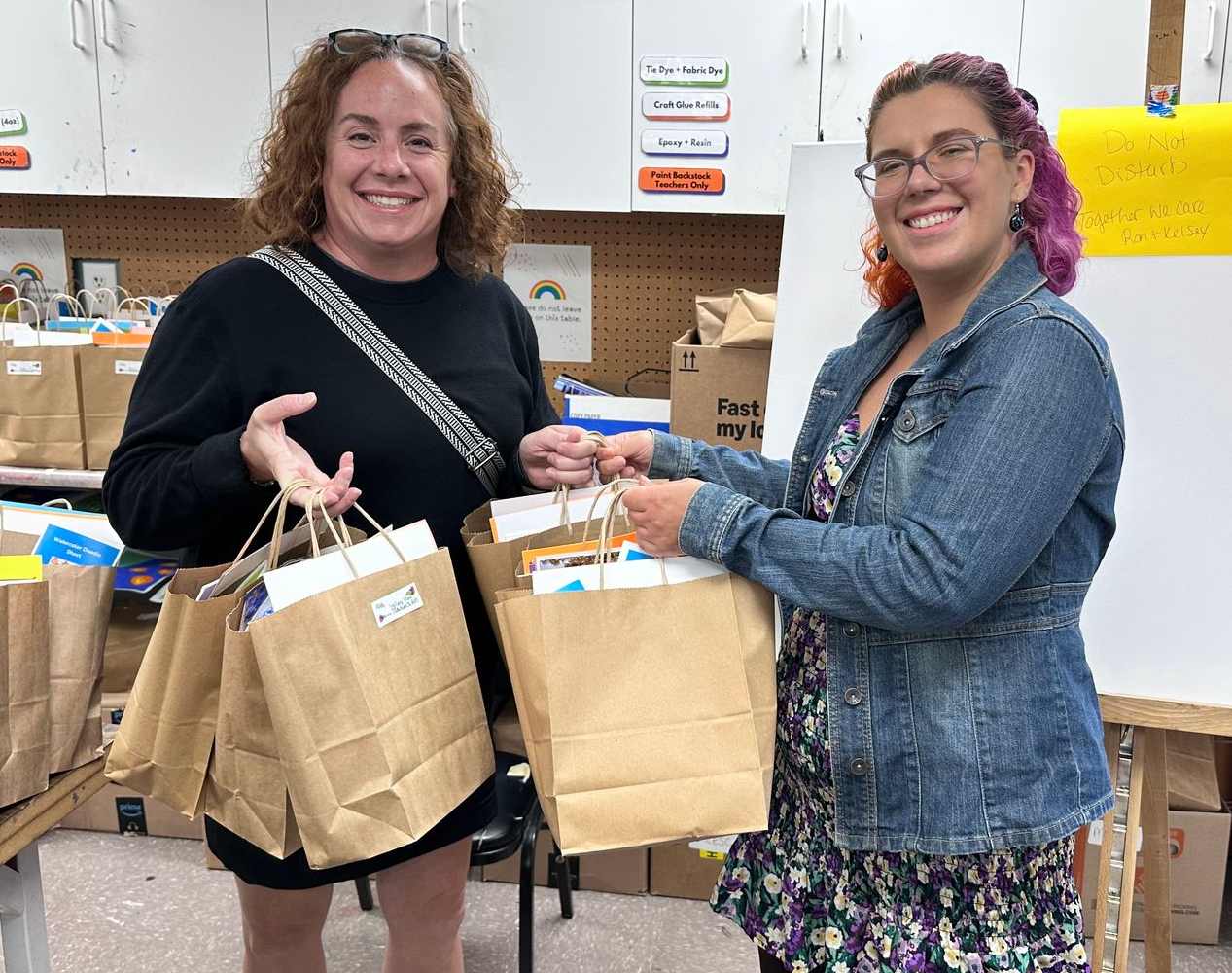 Eylina Ogden, Outreach Coordinator delivering Art Kits to local High School representative for Transition To Work Program