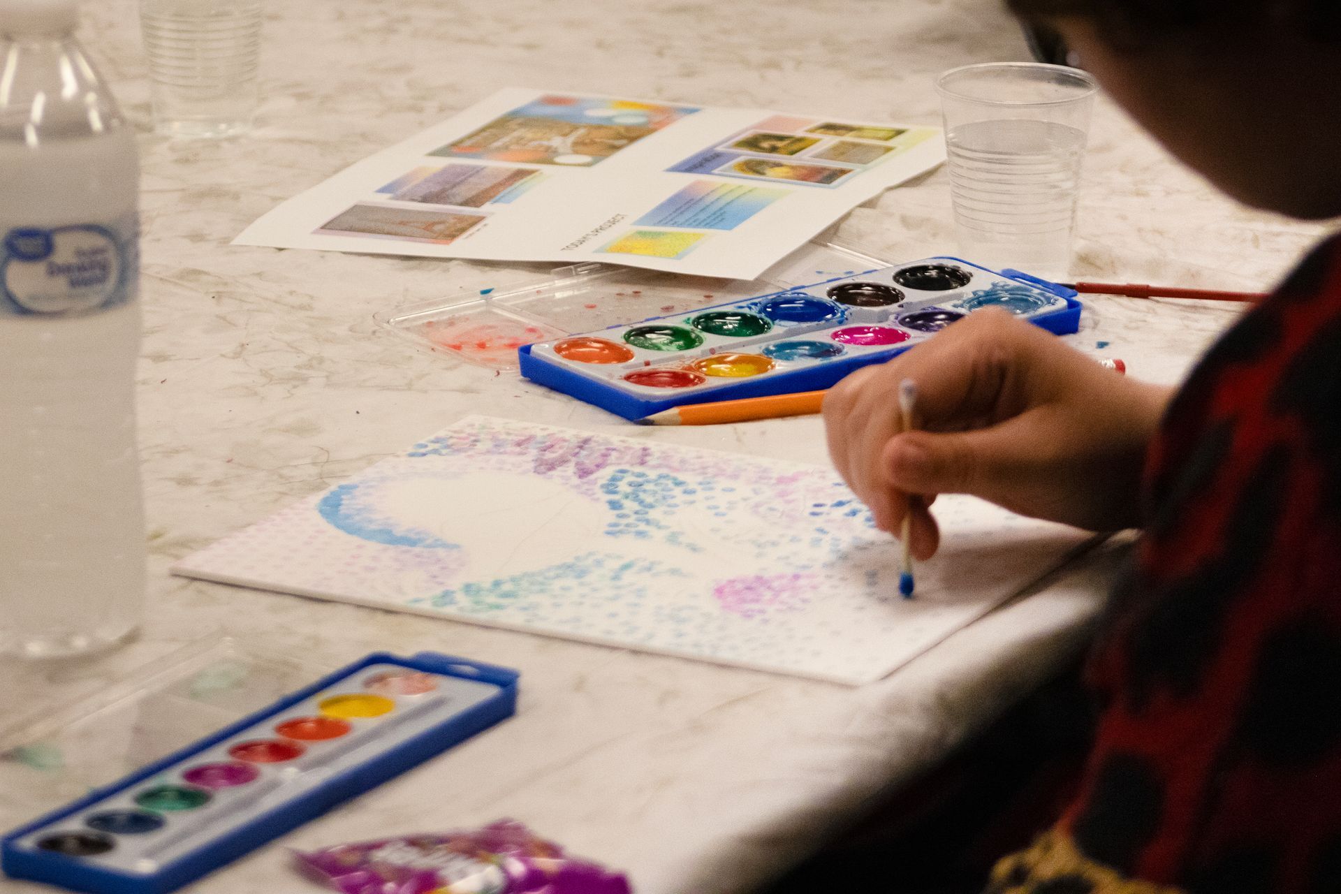 In May, the We Care Arts Outreach team continued our partnerships with Eastway, OneFifteen, Daybreak, Miracle Clubhouse, YWCA Dayton, and the Kettering Cancer Center. Participants enjoyed the opportunity to express themselves through collage and blackout poetry. We also explored the post-impressionist style of Georges Seurat by using cotton swabs to create a pointillist landscape. At Miracle Clubhouse, participants explored sculpture, using coffee filters to create large-scale flowers.