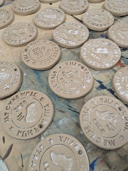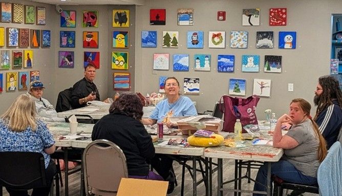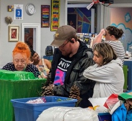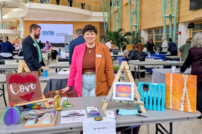 Our studios have been buzzing with creativity. Artist-clients have been working on collaborative upcycled art projects, stamped clay medals for the Run for Lilly event, and creating vibrant wet-felt flowers during a recent Visiting Artist session. Our Board President also proudly represented We Care Arts at Leadership Dayton’s Board Match Day, helping introduce our mission to new community leaders and advocates.