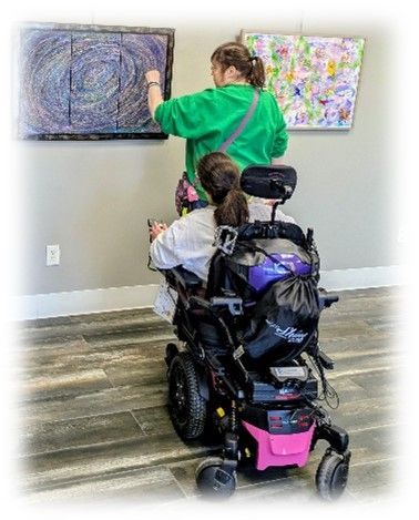 At the same time, We Care Arts partnered with Greene County DD to host monthly after-hours integrated Art Collaborative events. These evenings invited artists, families, partners, and community supporters to learn, listen, and connect. Guided gallery tours, led by our Director of Programming, Carlette Jewell, invited participants to explore the stories, techniques, and inspirations behind the artwork displayed throughout We Care Arts.