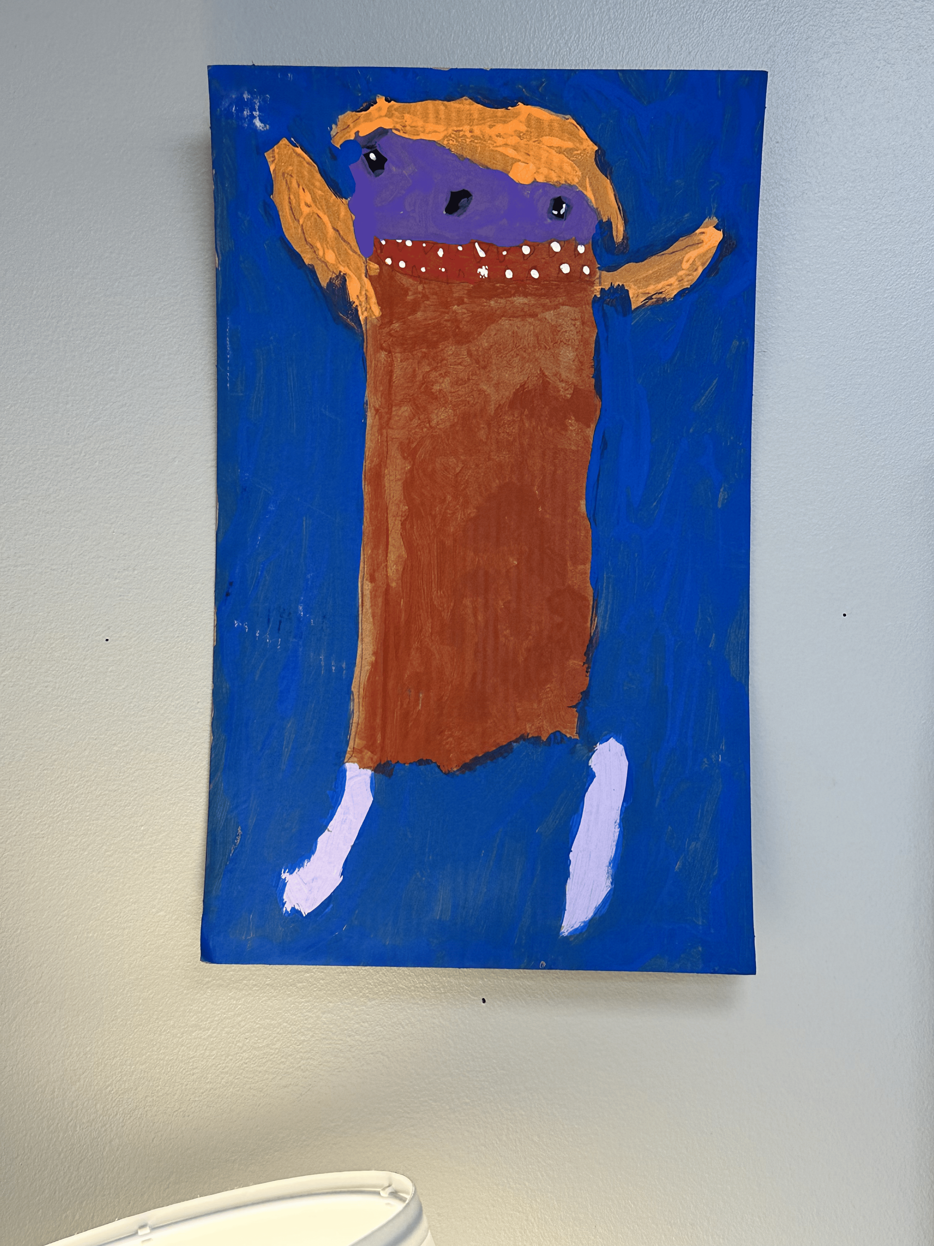 Kenny hails from Dayton and visits We Care Arts weekly. Among his favorite pastimes is watching football and painting the logos of his beloved teams. He draws inspiration from those around him and various artworks. One of Kenny's aspirations was to display his art on the walls of We Care Arts, and as you can see, he has accomplished that! For Kenny, the most wonderful aspect of We Care Arts is his teachers and the endless artistic possibilities available to him.