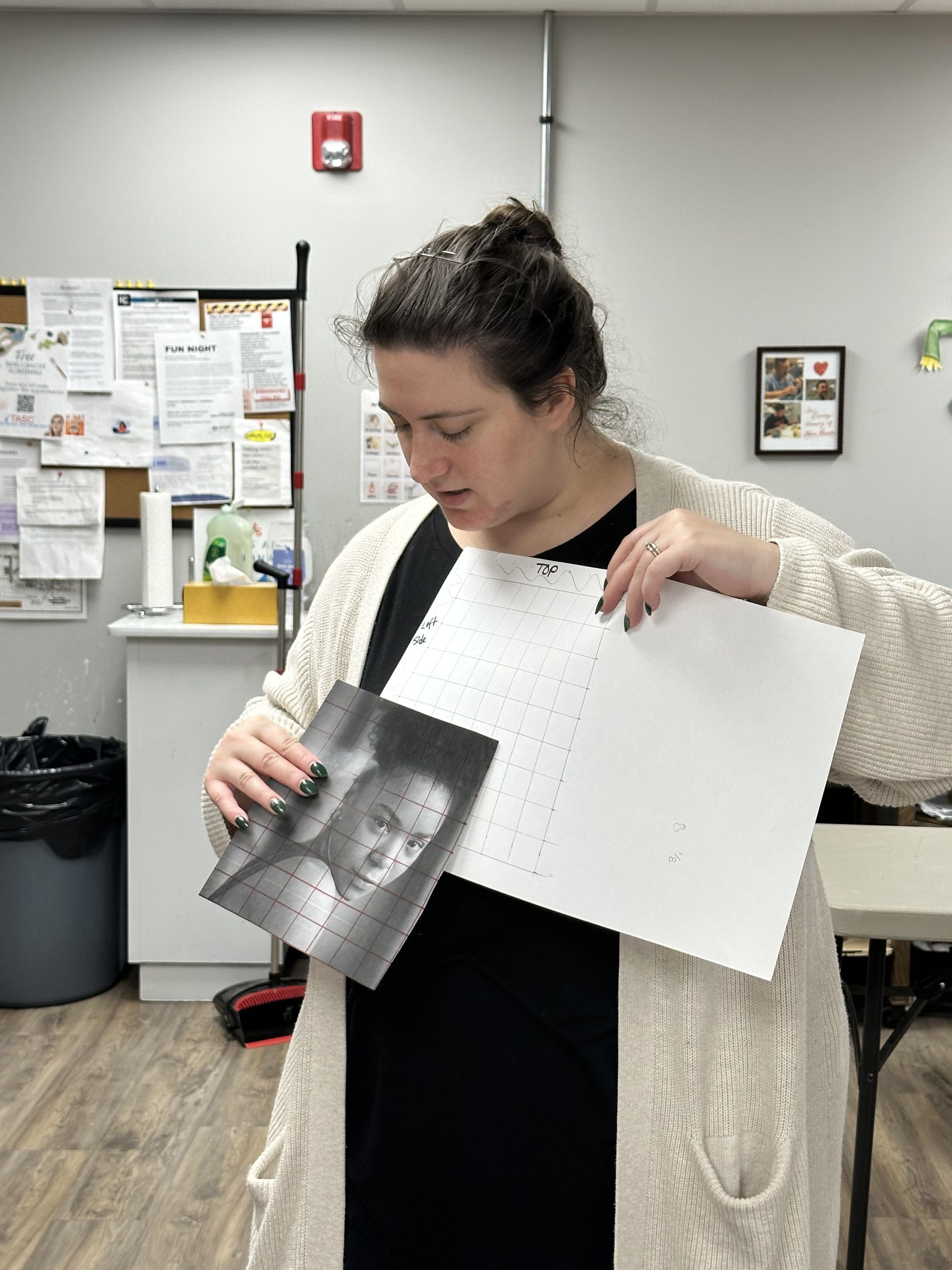 Anna's class learning portrait technique - Pictured L-R, Anna, Artist-Clients, Larissa W., Katie P., and Brooke H.