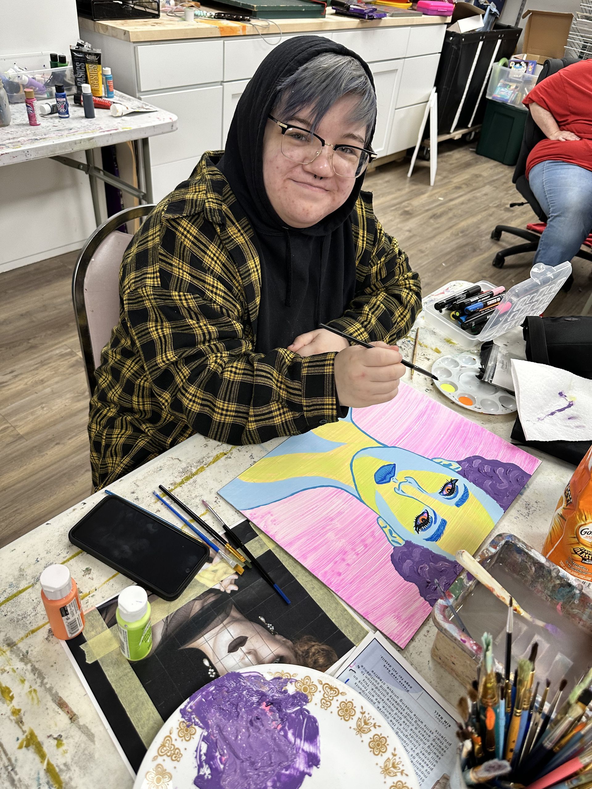 At least once a year, We Care Arts meets with each of our artist-clients to discuss and set their life and art goals. We look back on their teachers’ notes and reflect on their accomplishments. During these meetings, we hear incredible stories of growth—not just in artistic skills, but in confidence, connection, and self-advocacy.