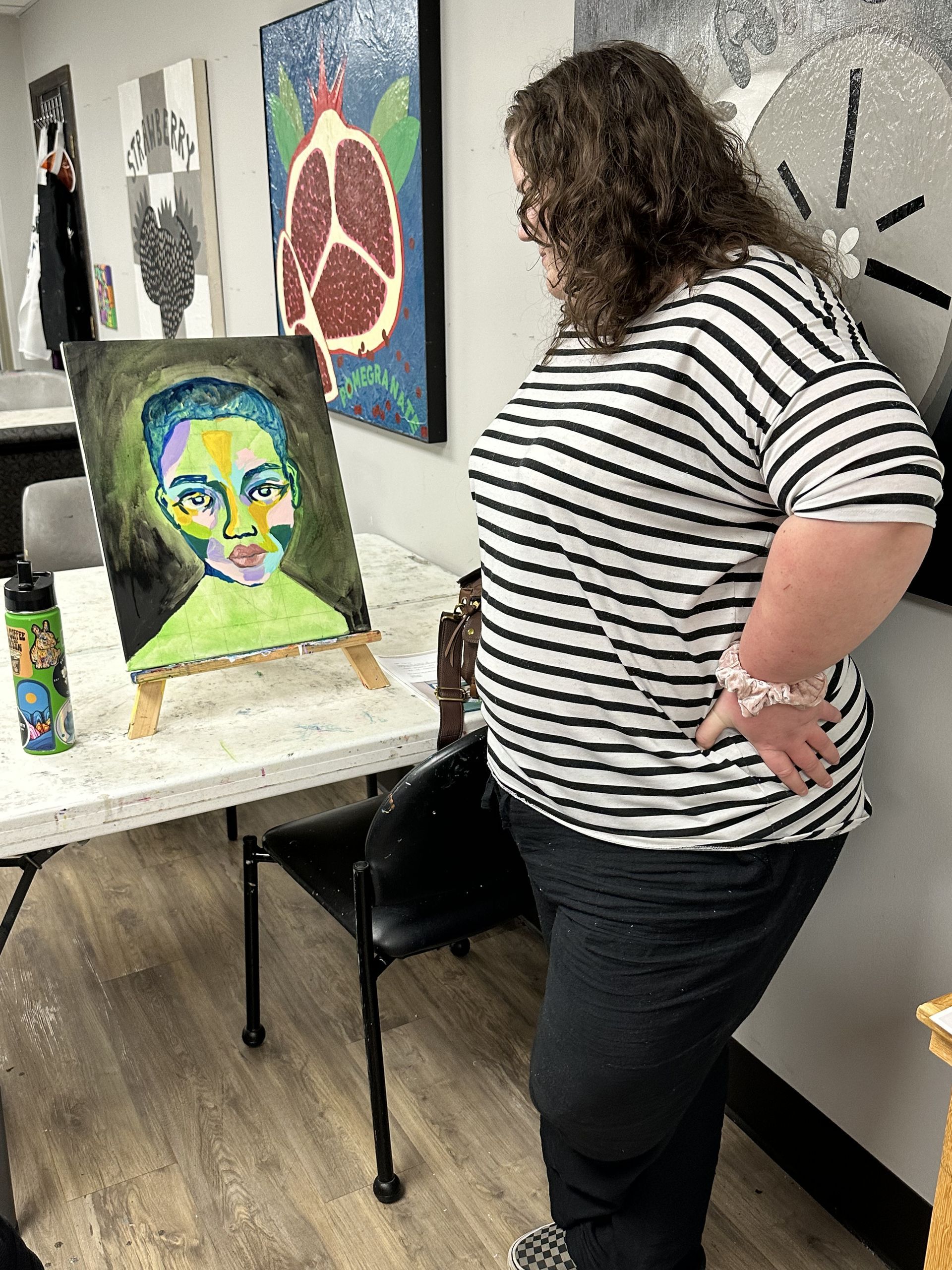 In one recent artist-client redetermination meeting the review highlighted how they had expanded their artistic knowledge through We Care Arts ArtWORKS curriculum. They discussed learning color theory, still life sketching, and working with new mediums like wood grain art, gold and silver leaf, abstract sculpture, and watercolor techniques. Their year-end summary highlighted how they developed skills in collaboration, experimentation, and reflection through our classes. Over the past year, they recognized their own strengths, built self-esteem, and developed a social support network. At the end of the redetermination meeting, the artist-client had decided to refine their art and life goals. What began a year ago at intake as "make friends and talk less" evolved into "improve painting skills, explore new mediums, and strengthen social connections."