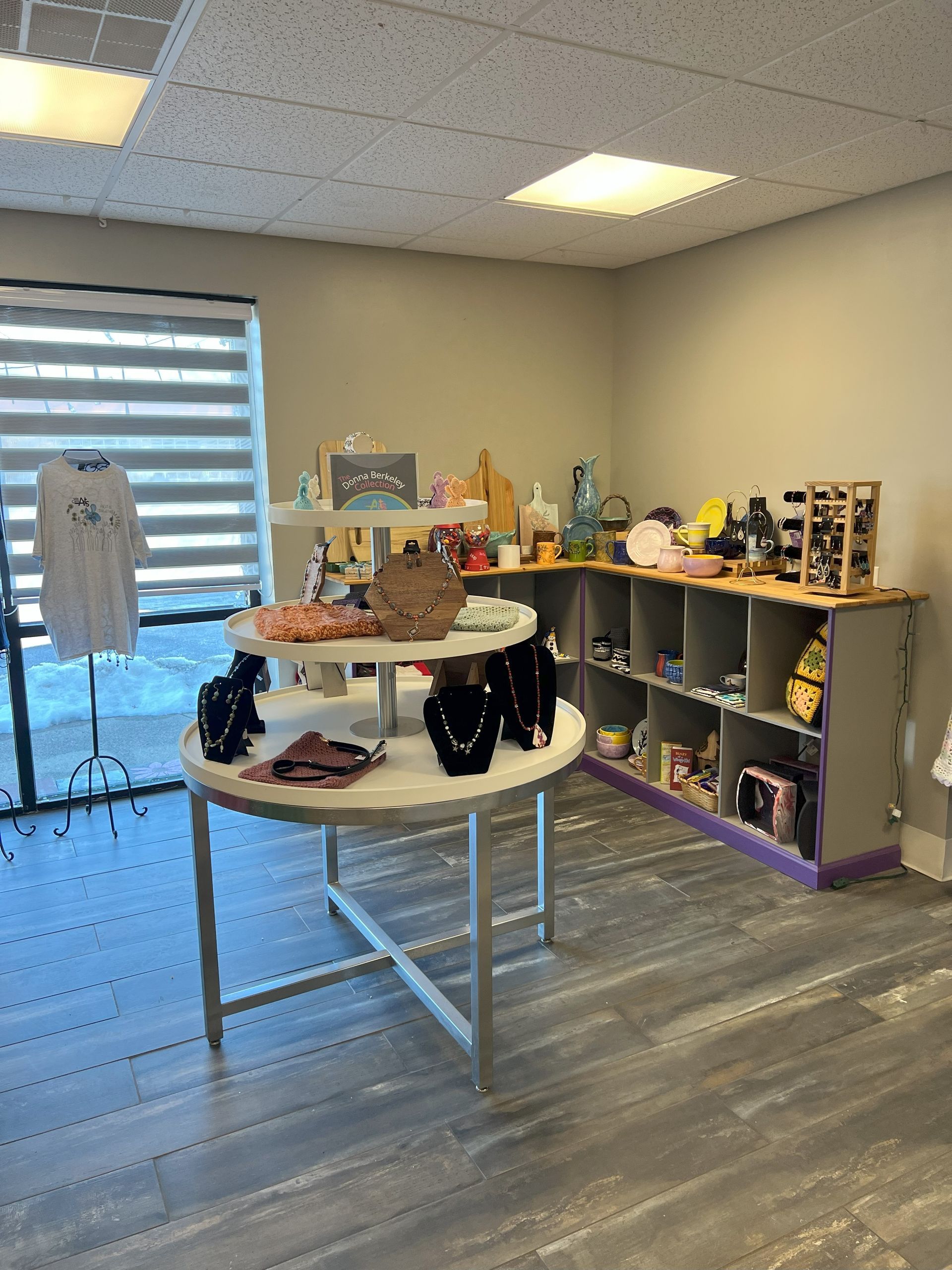 If you’ve stopped by our Berkley Center gift shop here at, We Care Arts, you may have noticed some changes. With help from Bob, I’ve removed half of the cabinets and shelves to create more gallery space. Right now, I’m using this space to showcase some of our “Together We Care” artwork. In the future, I hope to use this area to further highlight the work of all our artist-clients—whether the pieces are for sale or not for sale.
