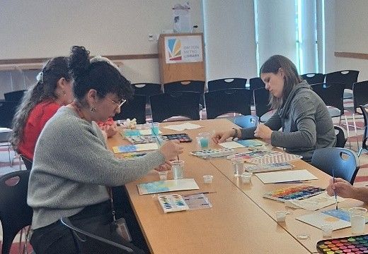 In November, Outreach focused on mindfulness through watercolor painting and natural dying techniques. At Eastway, artist-clients learned hapa zome, a Japanese practice of using crushed flowers to dye fabric. We also partnered with the Dayton Metro Library to complete a mindfulness painting exercise, creating a watercolor painting of an ocean scene