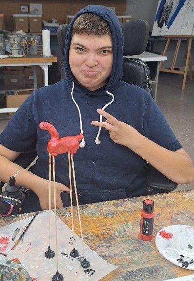 In September, we completed our final Outreach class of the year with Safehaven. During the class, our new Programming intern, Pamela, made a connection with participant Tina M., discussing their wooden assemblage projects and sources of inspiration. Our Outreach programming strives to create an environment where participants can build a sense of community among peers. In our Memory Café with Alzheimer’s Association, participants created a fall wreath. Pictured below is married couple, Dave and Kathy H, working together to create a beautiful decoration for their home. In our class with Broader Horizons, participants created their own clay animal sculptures, inspired by Salvador Dali’s “The Elephants”. Adding an art history spin to a lesson creates a well-rounded experience in the classroom, where participants use both knowledge and creativity to bring their work to life.