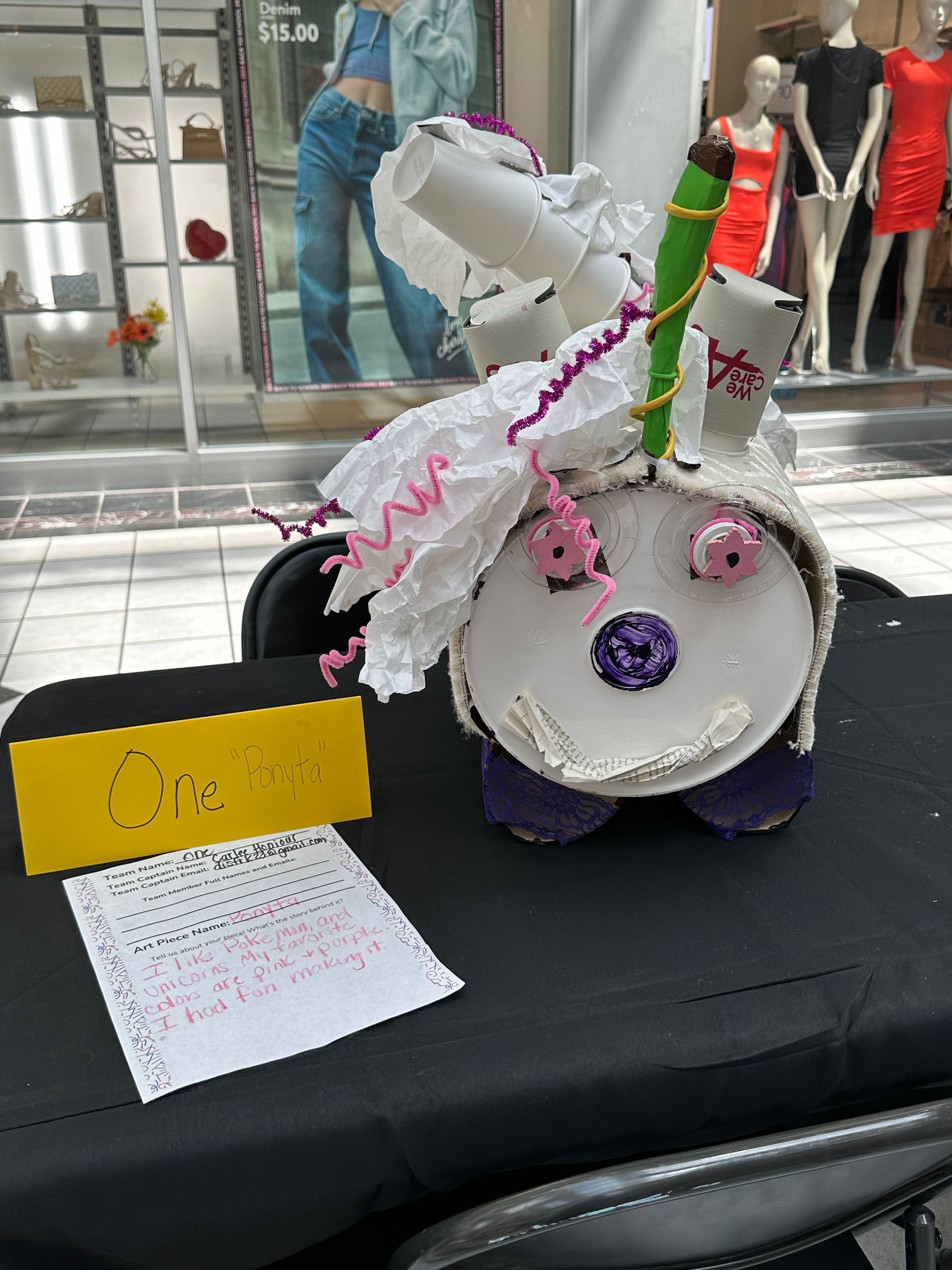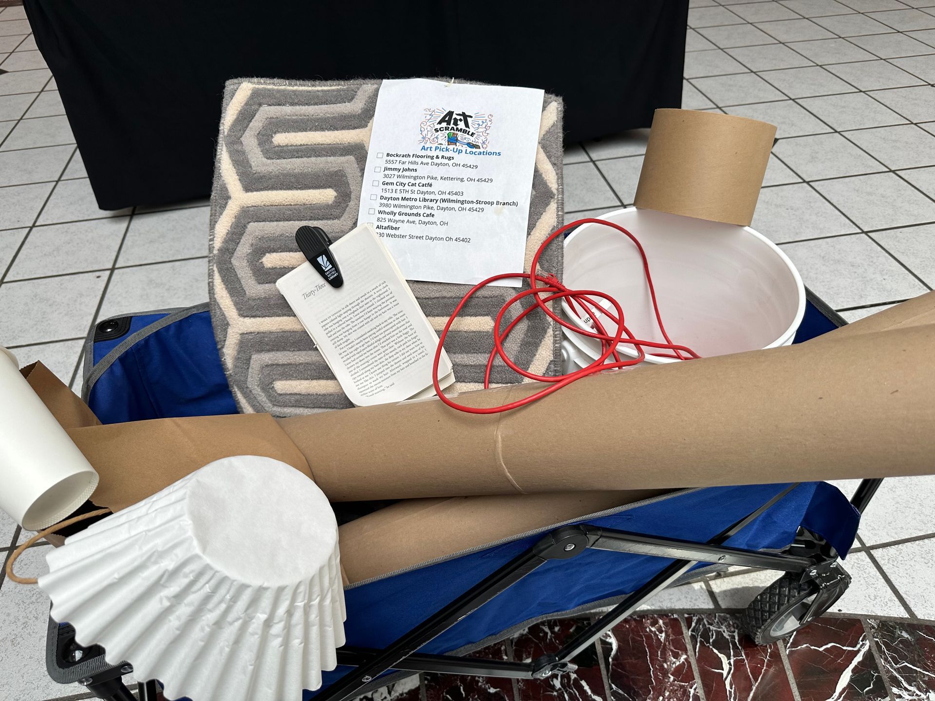 Gather a team of 2-10 members and sign up on our website. From September 16-20, your team will visit local businesses that will provide unique items to incorporate into your artwork - for instance, last year Jimmy John's contributed pickle buckets and Wholly Grounds supplied coffee filters. We Care Arts will also provide additional materials such as glue and scissors.