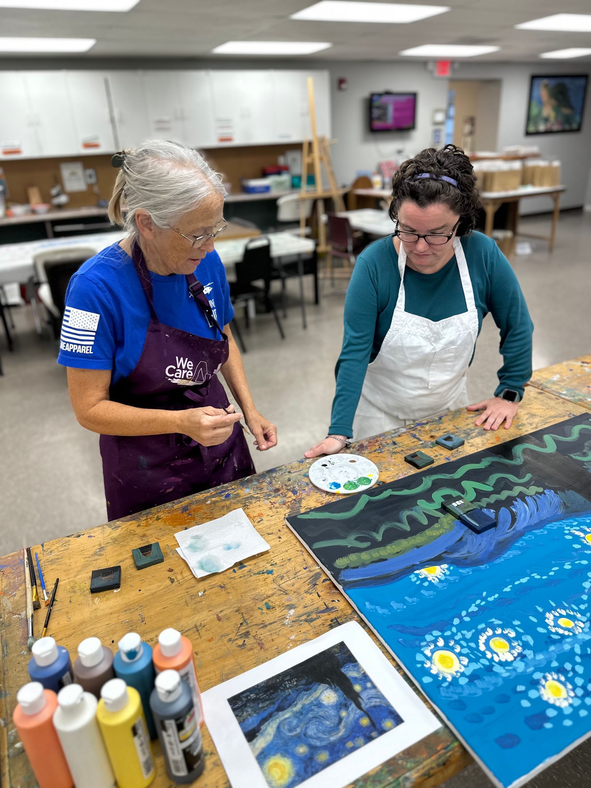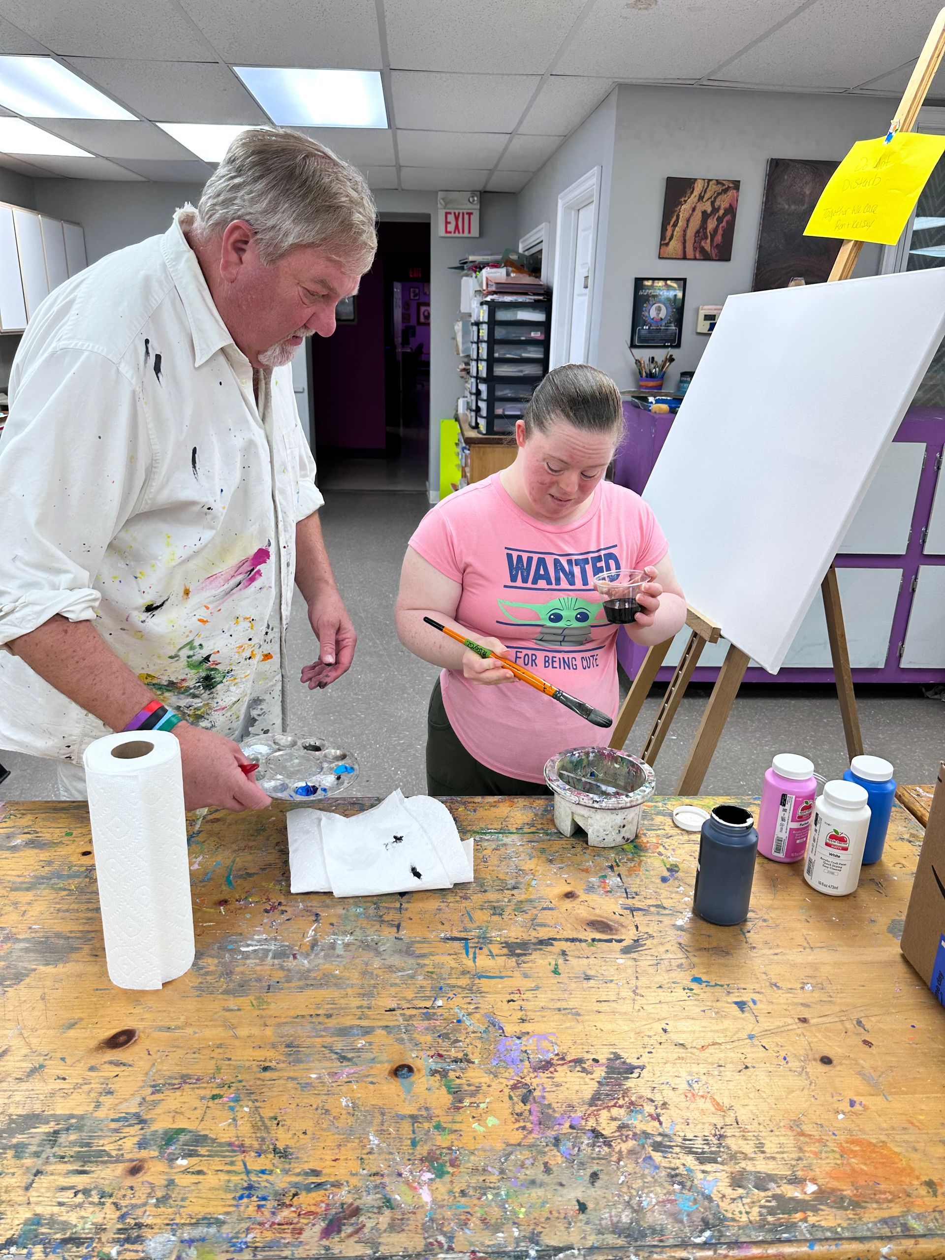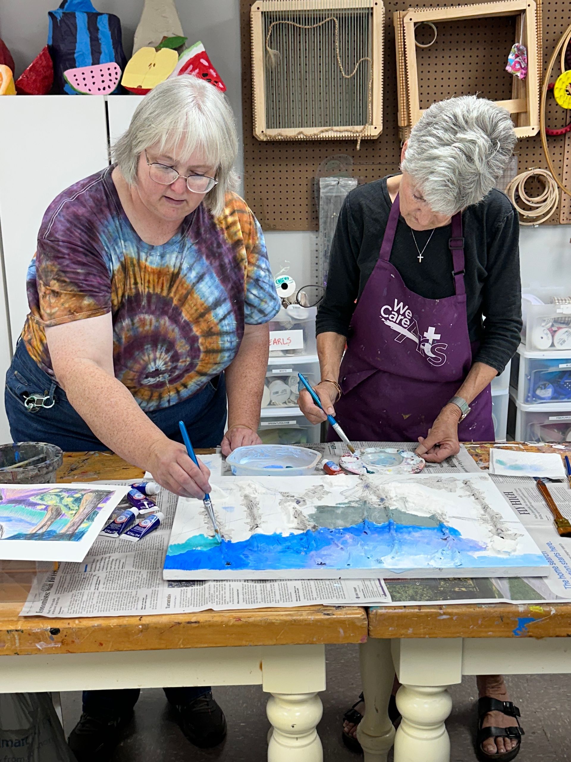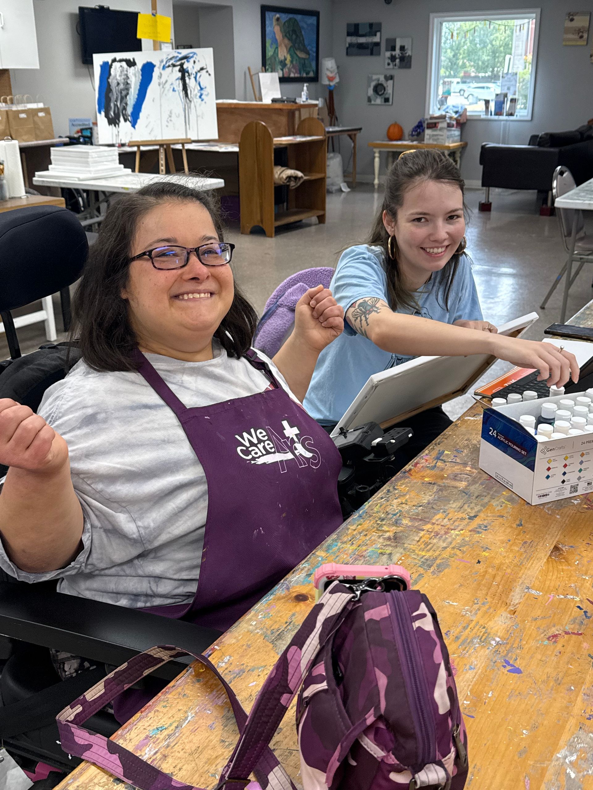 For months, We Care Arts’ artist‑clients have been working side‑by‑side with professional community artists to create original works of art that will be featured in both live and silent auctions during the gala. This marks the second year of these powerful collaborations—partnerships that blend skill, storytelling, and shared humanity.
